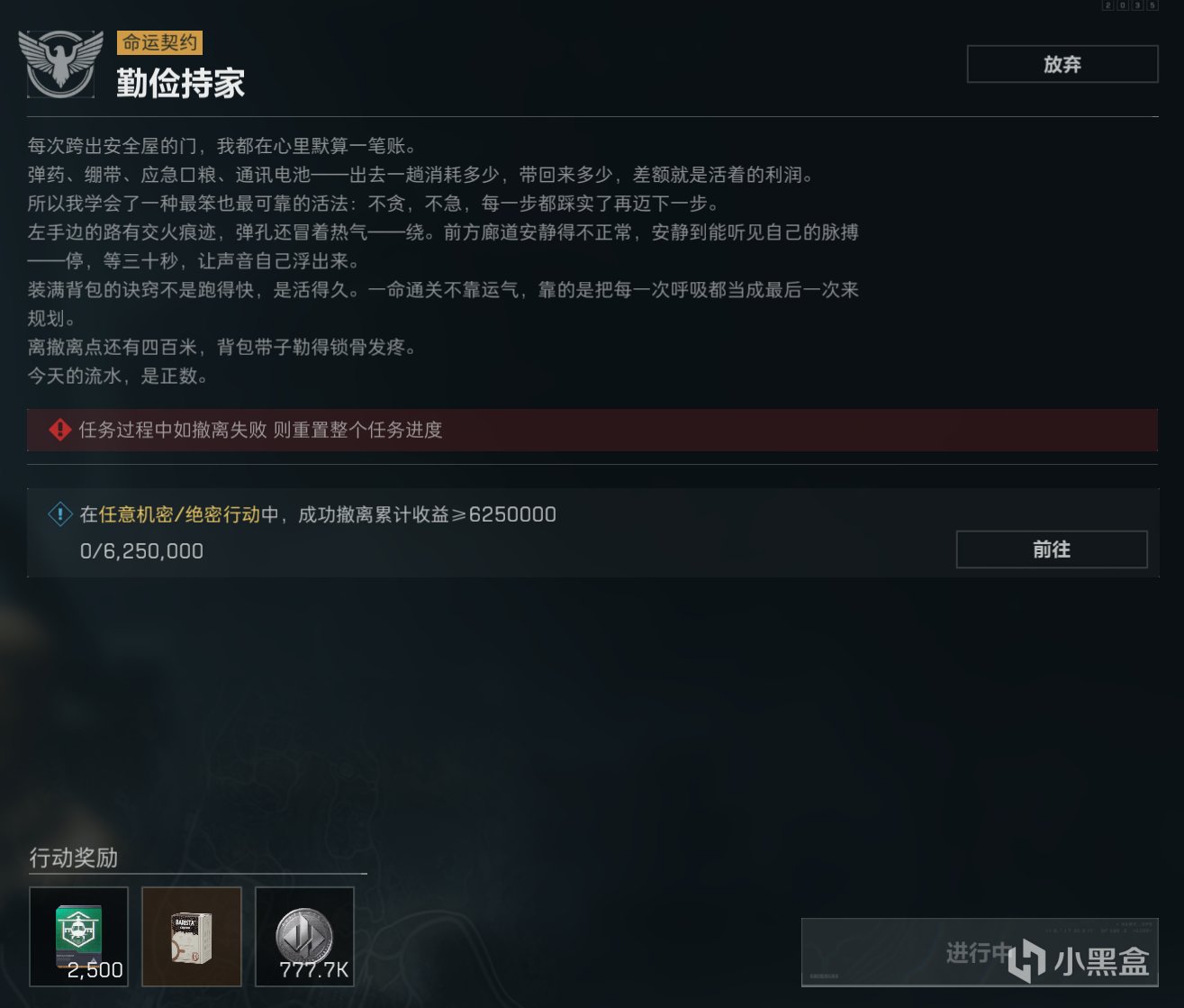 不過通過潮汐監獄撤離是不計算在整個勤儉持家任務統計裏的,並且失敗也不計入統計,越獄失敗≠撤離失敗是吧。