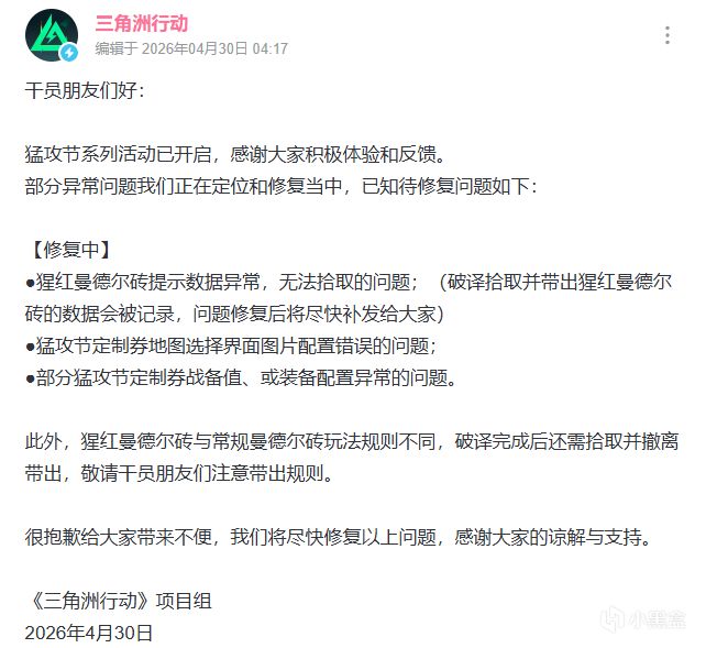 不知道是不是出了BUG,三角洲暫時停止的大紅磚的刷新(其他圖沒有測試,也可能是我運氣比較差),中午的時候監獄打了好幾把一塊也沒看到,曼德爾磚倒有。