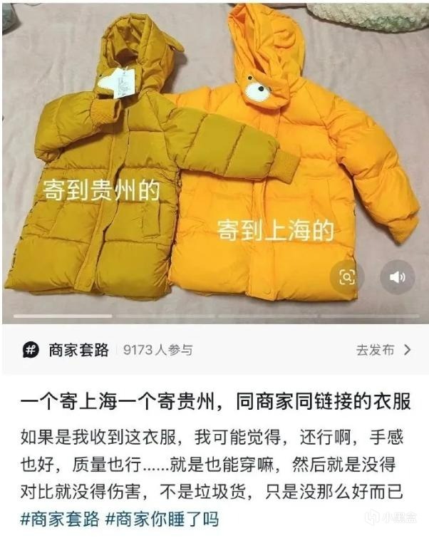 典型的例子就像同款儿童棉服,上海收到的版型饱满、充绒扎实,而贵州收到的颜色发灰、填充物薄得离谱。这背后的后台操作更是现实且冰冷:商家会给地址“打标签”,把北上广深标成“高维权敏感区”,不敢发次品;而偏远地区则直接被标为“低维权”,商家便肆无忌惮地发B货。