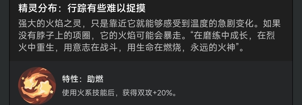 再看特性效果,“释放火系技能后获得双攻”,用来打输出是板上钉钉了。所以个体方面肯定是速度、物攻、生命最优。