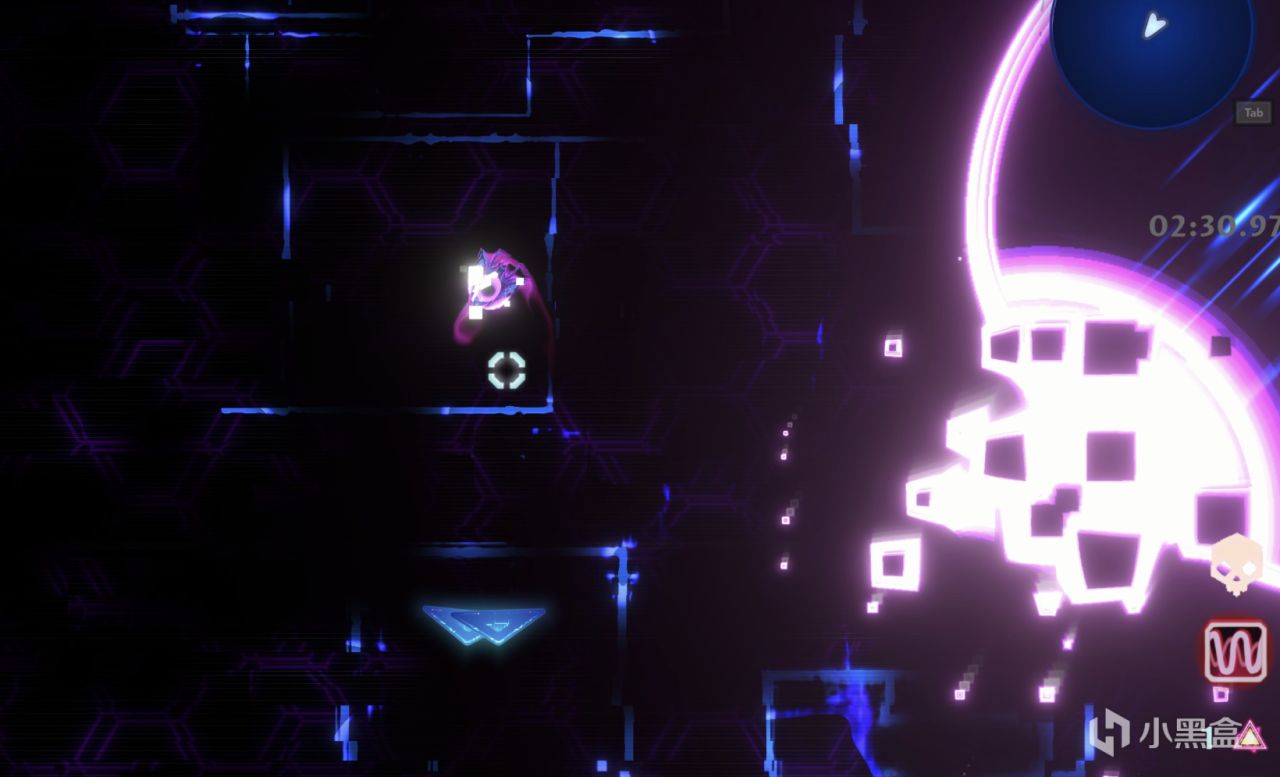 而操作机制就有点难评了。作为横版弹幕射击,这游戏做了一件很离经叛道的事: 滞空=无敌。也就是说只要玩家在跳跃或者下台阶,就可以无视所有弹幕。翻滚变成了小冲刺,不过在地面也有无敌帧。这样看来玩家性能强的飞起,但并非如此。既然有滞空就有落地,玩家如果操作时机不当,在某些时候是会因为地面的弹幕受伤了,而且生存关卡是有各种机制的,比如平台移动,炸药格子之类的。真打起来混乱的话,视觉元素其实蛮混沌的,很多时候看不清危险。