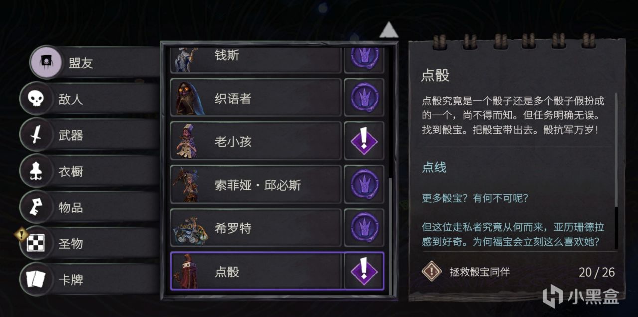 首先聊聊局外,因为这个局外成长拉完了。武器属实不多,但他们做了很多被动变体,但是这些变体和增益全都需要局外资源解锁,且这些增益是相互照应的,缺哪个都不完整。其次是各种属性增益也要花好久解锁。而真结局的解锁需要你完成每个npc的特定任务,有些还会与时装系统相关。