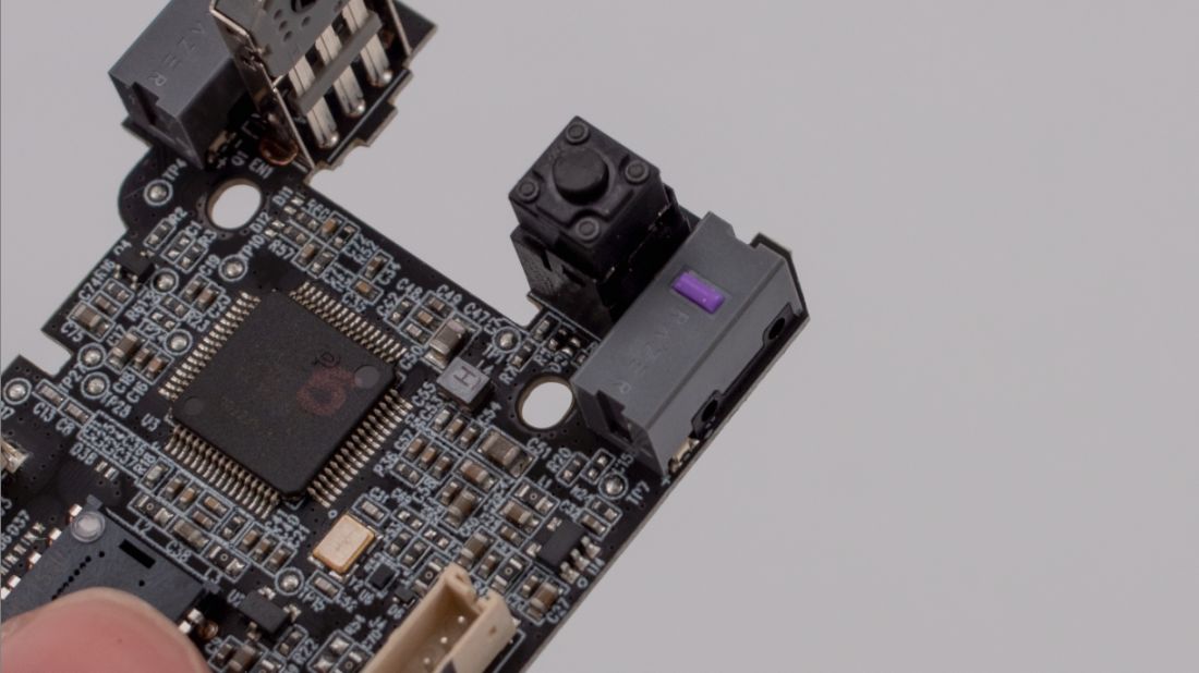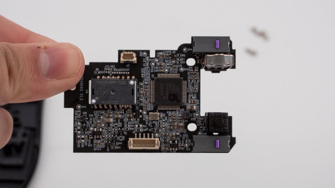 板載兩顆IC,一顆是PAW3950頂級傳感器,另一顆是恩智浦的MCU。