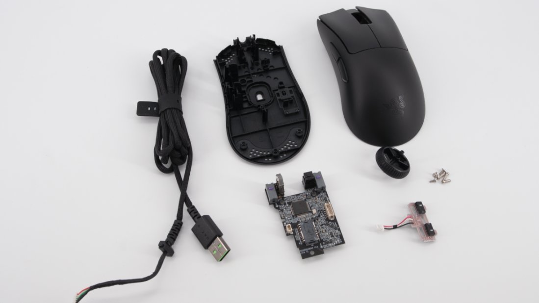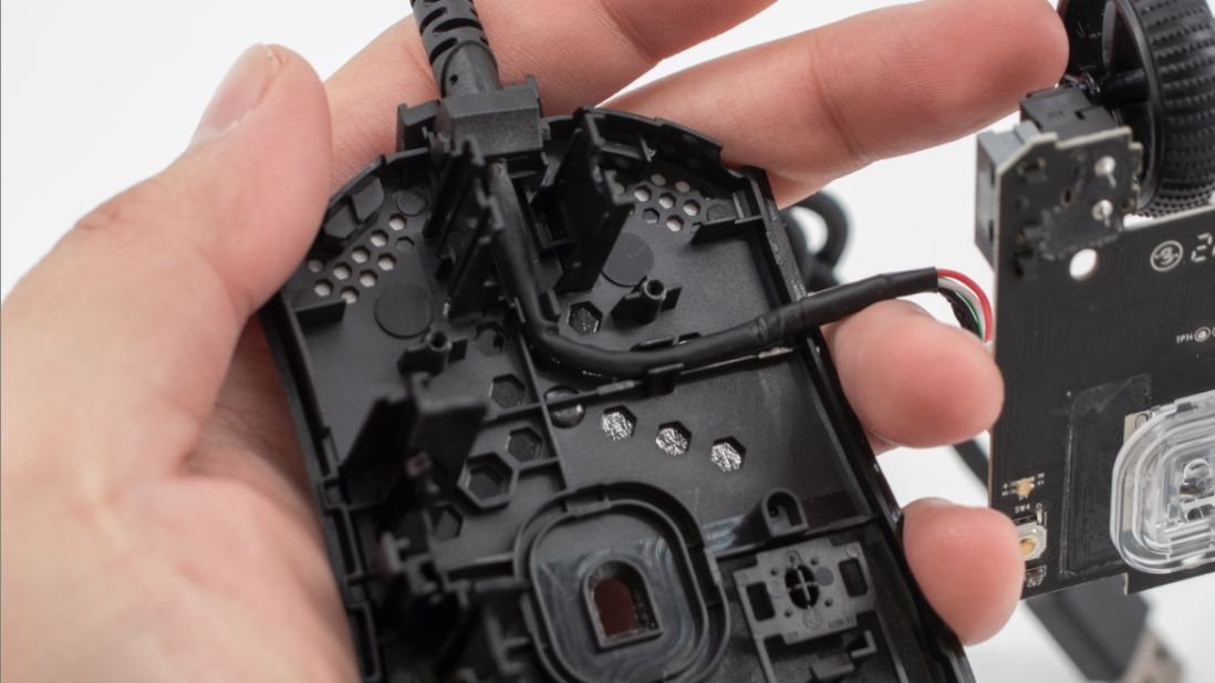 最後來看下拆解,因爲之前做無線蝰蛇V3測評時就已經把內部詳細分析過一次了,這次主要展示有線版和無線版之間的差異點和不同。
