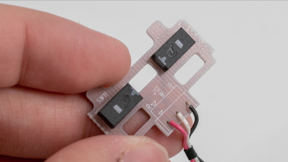側鍵爲獨立小板設計,微動爲長風白點,和無線版本的長風綠點有所區別。