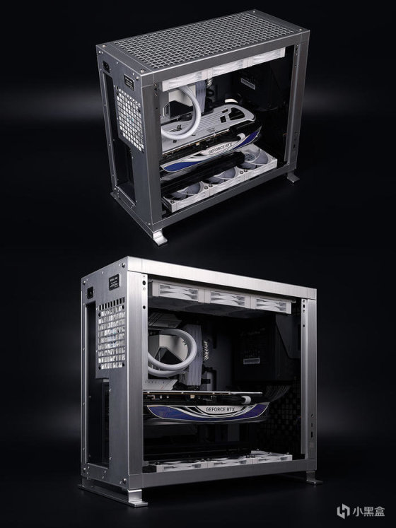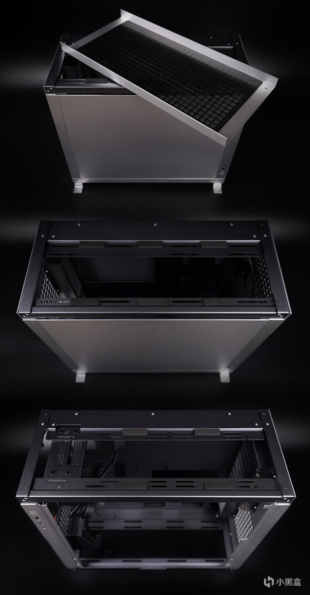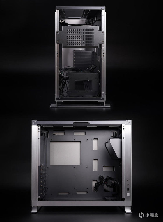 内部金属本色,与其外观风格相符,很工业风.... 前置电源安装结构设计( 支架支持不同位置的调整 ),支持电源长度大于 200mm,下硬盘支架,支持安装两块 3.5 寸 HDD 及一块 2.5 寸 SSD,其它方面 CPU 散热器限高 180mm,显卡最长 420mm( 长电源安装,则为 349mm )。