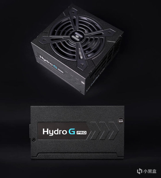 电源本体,两侧 HydroG PRO 标识,辅助有凹凸面图案修饰,短尺寸身材,具体为 150×150×86mm ( L x W x H ),短小的身材可以更好的兼容到机箱,同时安装及拔插模组线也会更加的方便,表面采用火山岩质感烤漆,更加耐磨耐脏。