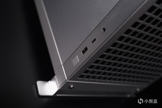侧边框放置 I/O 接口,给到有一个方形开机按键、一个 USB 3.2 GEN1 Type-A 接口、一个 USB 3.2 Gen2 10GB Type-C 接口、一个音频输出输入复合接口。