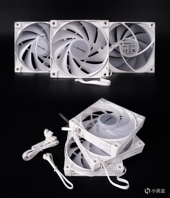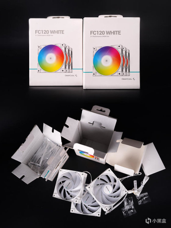水冷本体采用纯白的外观设计,搭配白色风扇型号为 FK120,自家高性能散热风扇,FDB 轴承,转数 500~2250RPM,最大风压 3.27mmAq,最大风量 85.85CFM 。风扇的四角有橡胶减震垫,可以吸收震动,提高静音效果。