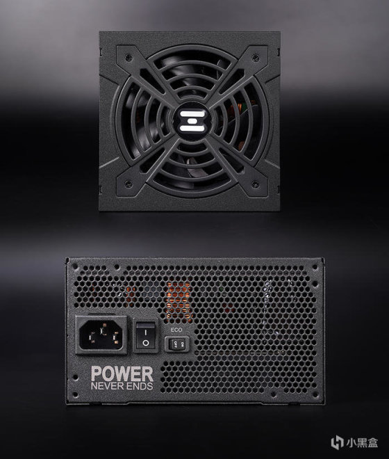 标配 120mm FDA 动态液压轴承风扇,最大转速 1500RPM,保证散热的同时,也可以给到较好的静音体验,满载的情况下噪音低于 30dB ,另支持 ECO 智能风扇启停技术,通过尾部 EC 开关开启,当负载低于 30% 可实现风扇停转,实现零噪音。