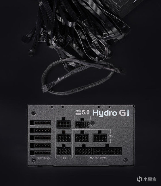 模组线材除 12VHPWR 16PIN TO 16PIN 为黑色包网样式、其余均为黑色全扁平化样式,模组接口方面,位置上带有区域划分及文字标注,除了给到一个 12VHPWR PCIe 5.0 接口,另还给到 3 个常规的 PCIe 8Pin 接口,满足常规显卡的使用需求,其它 2 个 CPU 8PIN 供电接口,5 个 PERIPHERAL 接口,24PIN 则为合二为一的两组。