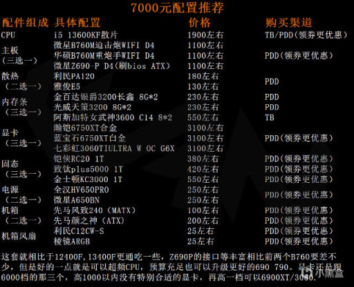 7000元可以上13600KF了,性價比還可以,就是主板有點貴