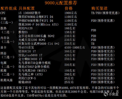 九千元左右可以跟上個配置一樣上3080,其實個人更加建議等一手4070,據說預計售價4499,現在4000塊買3070ti的就真的有點大冤種了。