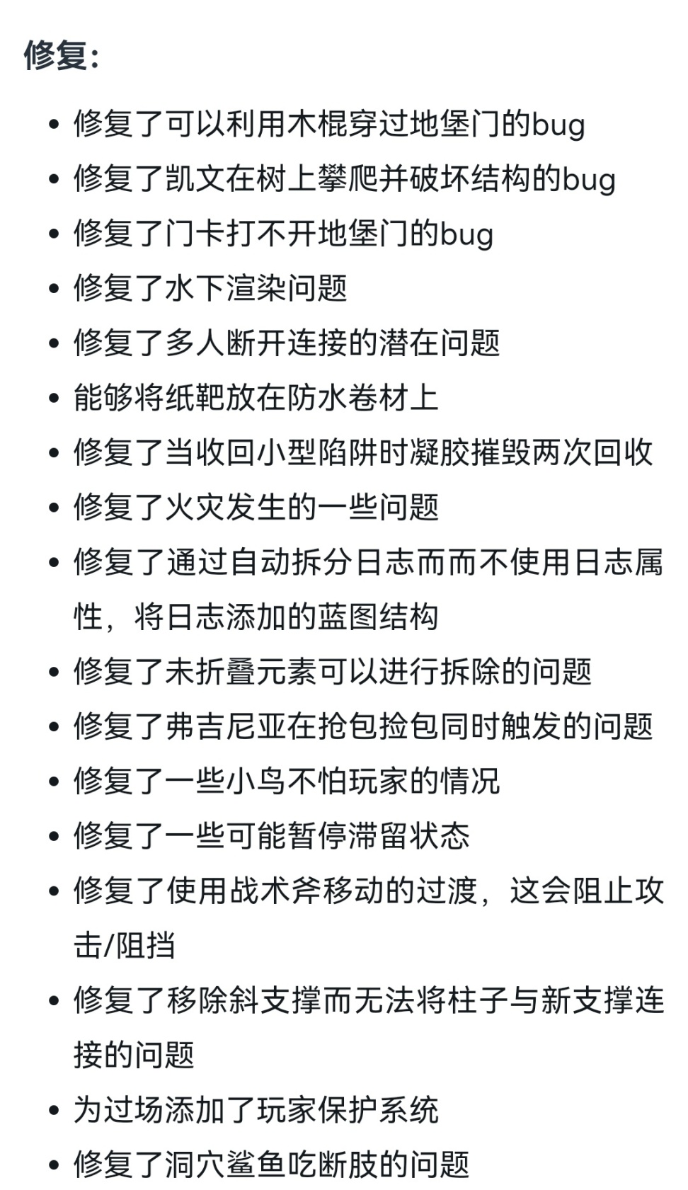 —修復了凱文在樹上攀爬並破壞結構的bug