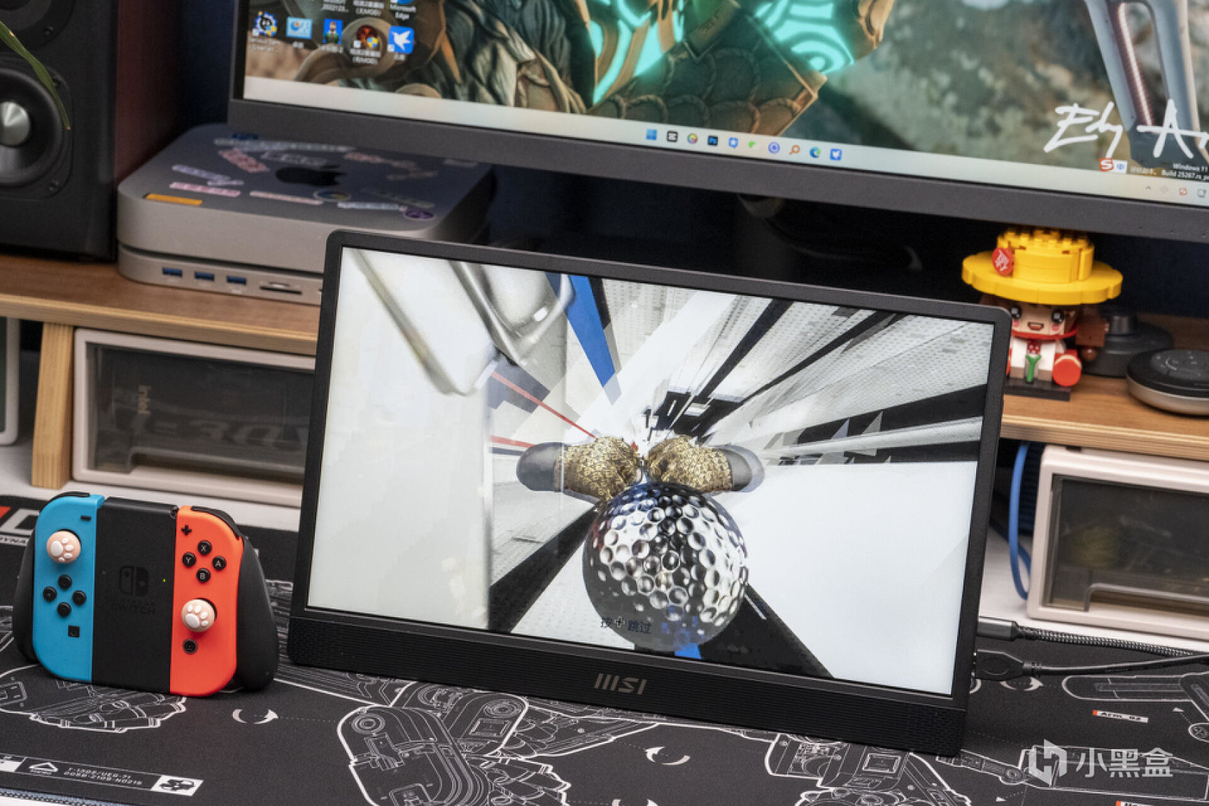 讲完了办公,再来谈谈MP161显示器另一项非常重要的使用场景,配合NS做家庭的娱乐中心。微星的这款显示器在素质上还是很不错的,1080p分辨率搭配NS有限的性能真的挺般配。在大屏幕上的游戏体验比起NS的6.2寸屏幕简直是强太多了,完全是另一种体验了。