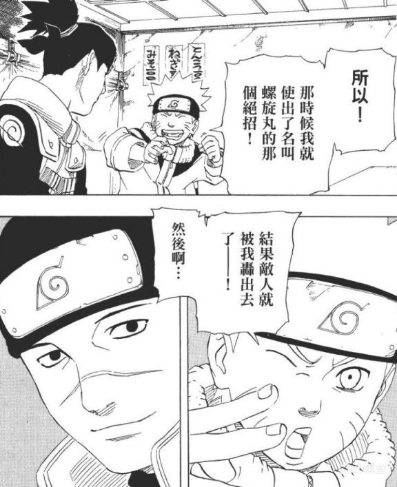 比如三忍篇結束,修煉回村的鳴人興奮的跟伊魯卡分享自己戰鬥的過程。