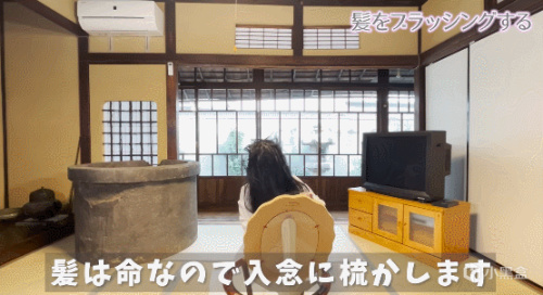 在視頻裏貞子不說話,靠肢體動作和字幕盡力與粉絲交流。而作爲一個妹子,起牀之後的化妝是很有必要的,先是梳理自己最愛的秀髮: