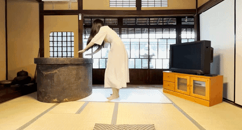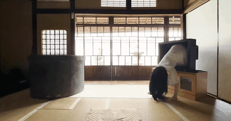 還有在家裏進出時,非要從老式的25寸電視裏爬出來: