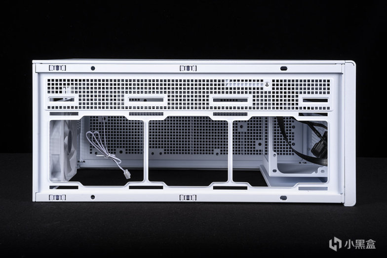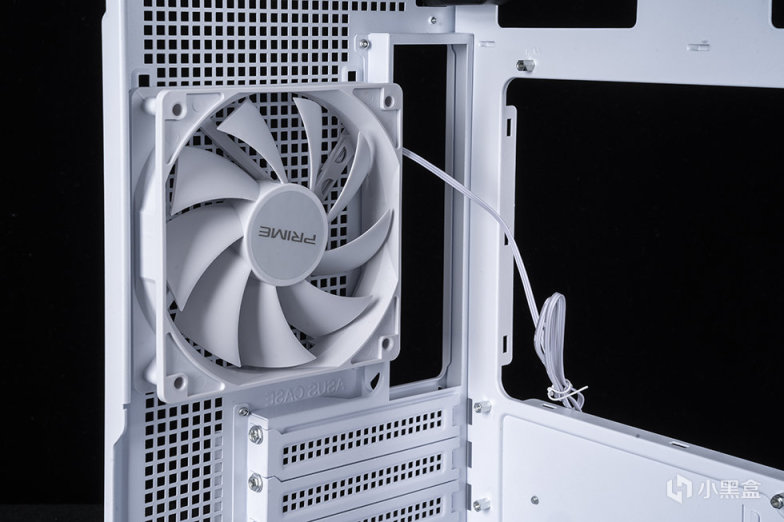 机箱尾部附带一颗同色的12cm风扇,进行舱内辅助排风,由于安装360水冷,位置和水冷管有冲突,后期将其拆除。