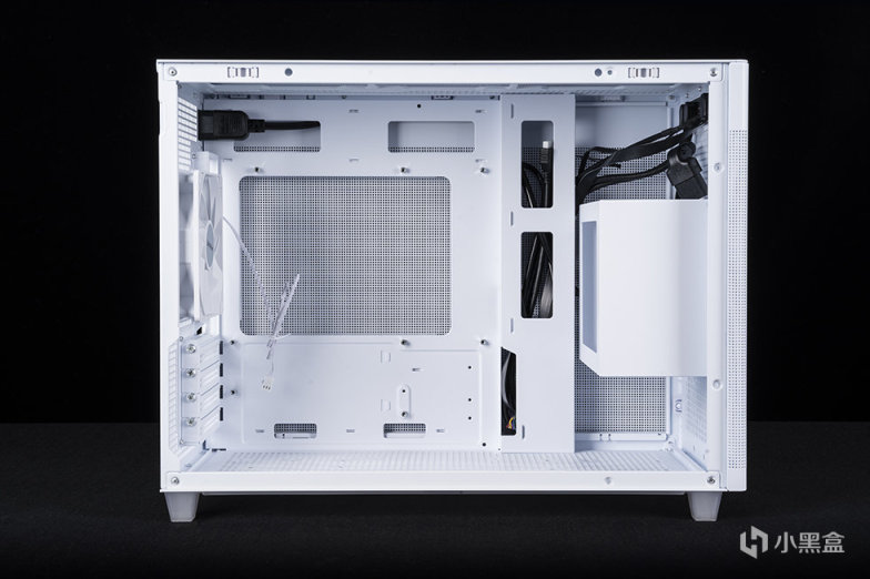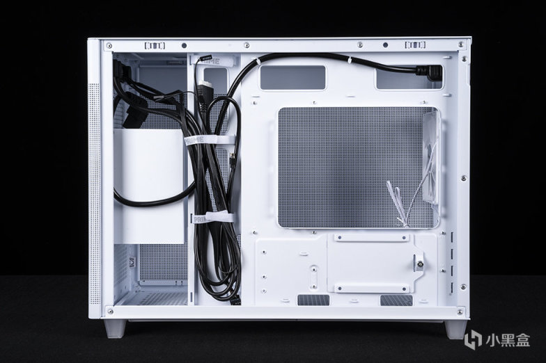 打开侧板,内部整体架构还是很紧凑的,由于显卡的厚度,没有在底部加装额外的进风风扇,不过得益于机箱的6面MESH设计,整体散热效果并不受影响。