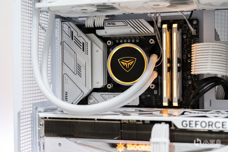 整机采用了13700K+B760M+4080的核心搭配,所有配件均尽可能采用白色配色。6面mesh的设计很好体现了机箱的整体协调感的同时也尽可能提升了机箱的散热的效能。