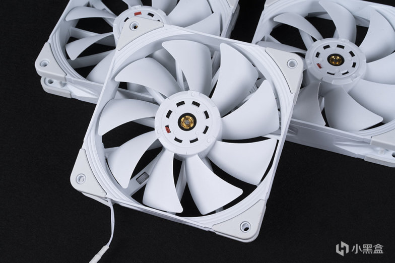 自带三颗无光高性能增压风扇,采用轴芯铜套一体注造的FDB轴承,9扇叶设计,模拟了涡轮结构,风压可达到2.64mmH2O,最大风量71.86CFM,扇框四角均带有减震垫,支持PWM温控。
