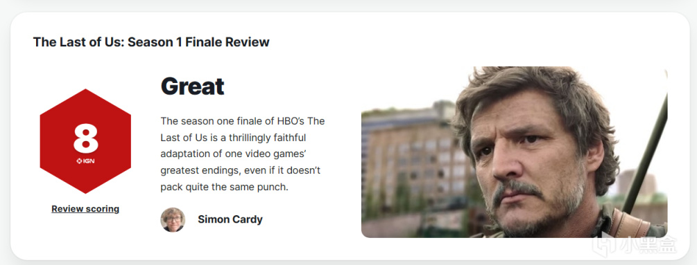 IGN给出了8分优秀的评价,并表示该剧集是最忠实于原著的游戏改编剧,尽管结尾的冲击力稍显逊色: