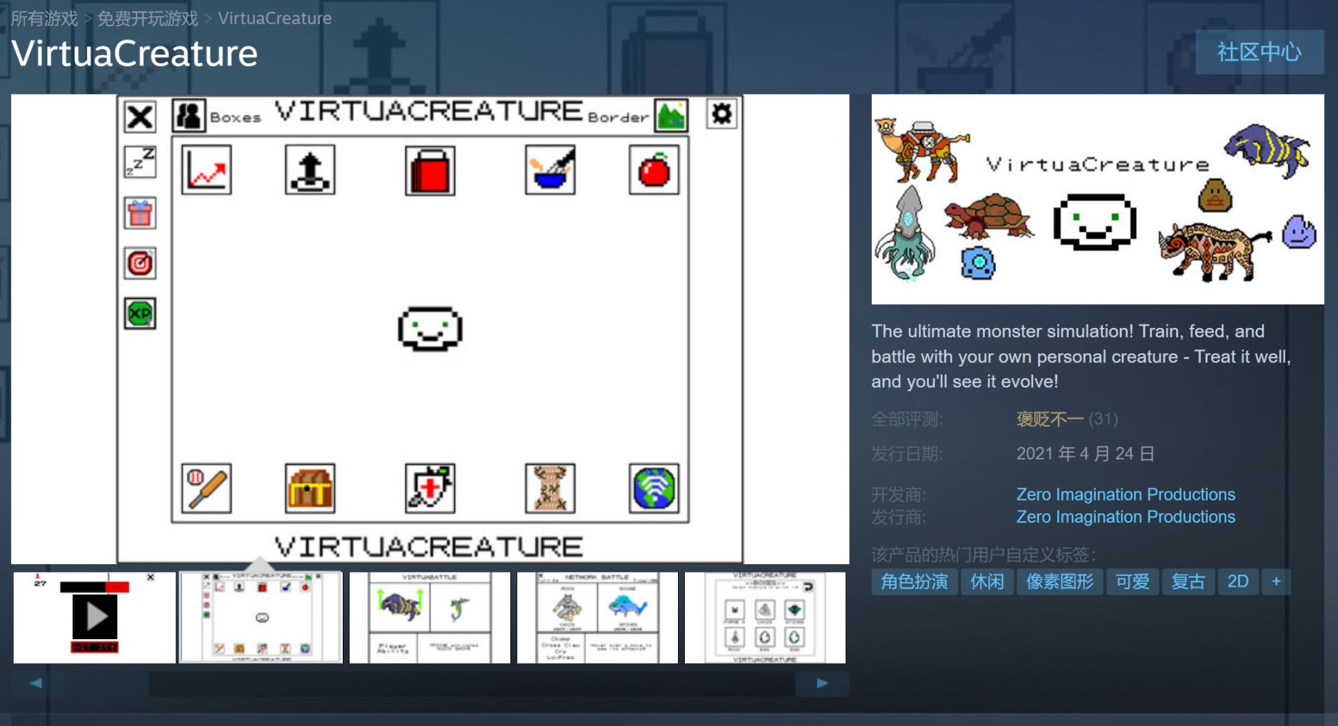 【VirtuaCreature】現爲免費遊戲,將於近期轉爲付費,現在入庫可永久保留