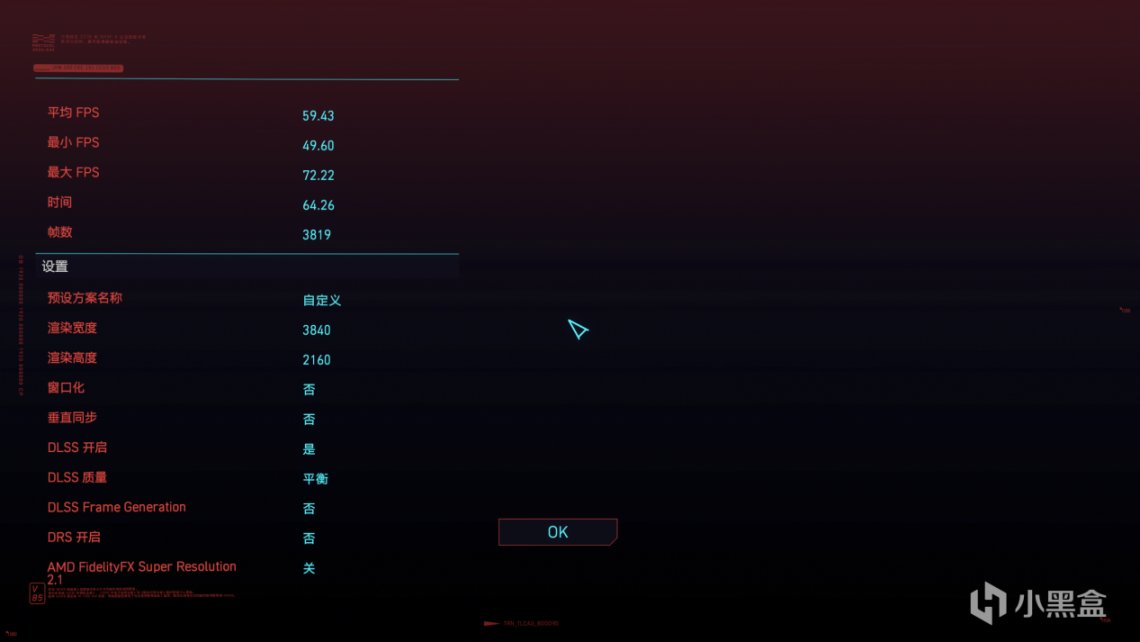 其实4K游戏性能我也测试了一下,上面帧数统计图里能跑90帧以上的游戏,4K也都能最高画质60帧左右玩,90帧以下的游戏比如赛博朋克2077画质从最高降到高,DLSS开平衡也能达到60帧左右,这配置4K也有一战之力。