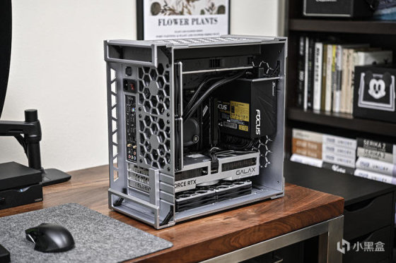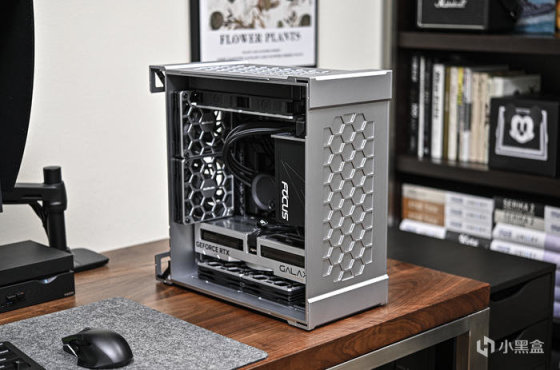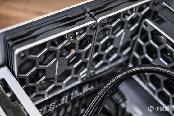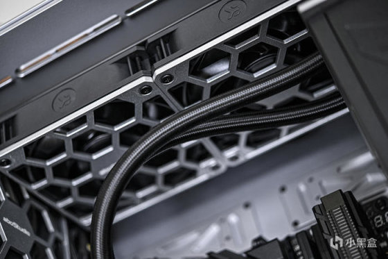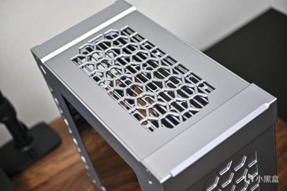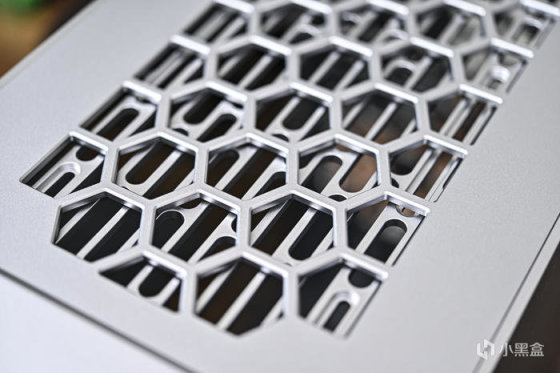 機箱頂部則是同樣的蜂窩狀六邊形完全開孔通風,內部隱約可見的風扇架。