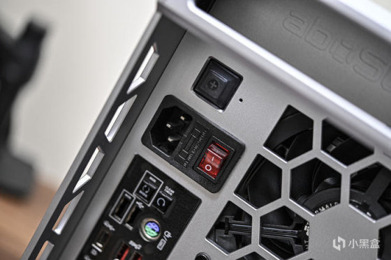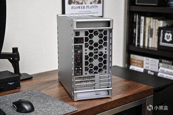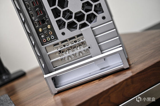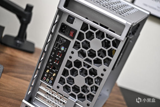 尾部上部類提手式設計,左側是機箱開關和電源接口以及獨立電源開關,下方是主板 I/O 接口,右側則是上下兩個 120mm 風扇安裝位。