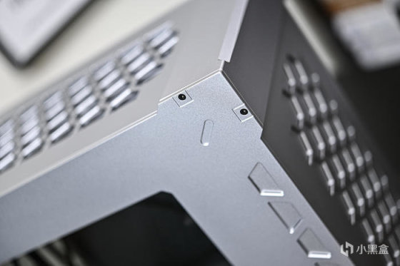 換個角度可以看到所有網孔邊緣均做了開孔處理,視覺上的角度看不出開孔,正面“無孔”讓前面板更具整體感。