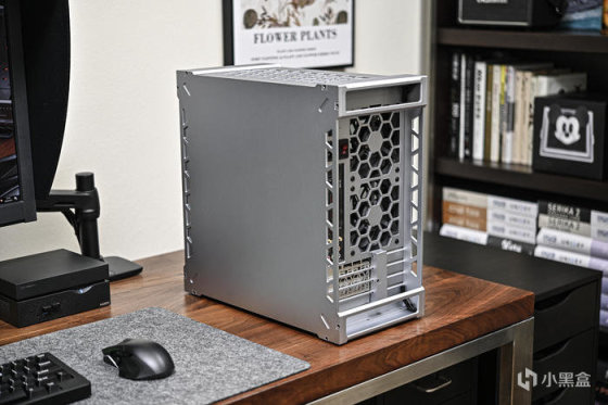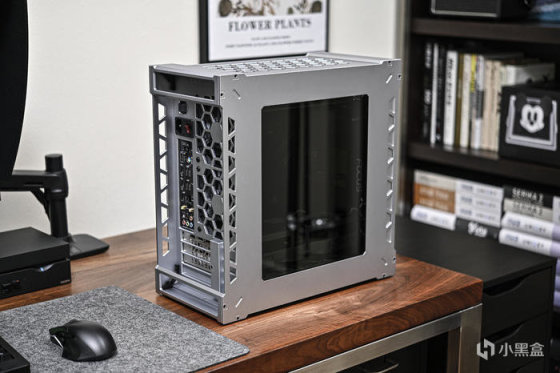 今天生日,裝一臺高質感無光主機——aboStudio ContainerL。這是一款 MATX 機箱,外觀方面是非常硬朗的機甲風格,整機尺寸:400x200x400mm,黑灰雙色可選(此次爲瑩銀灰配色),整體材質爲 6061氧化鋁,CNC/噴砂/陽極氧化工藝製成,表面陽極處理和各種拼接邊緣、接縫處理非常精緻,本人也是多年客製化鍵盤老玩家,個人認爲雖然是量產機箱,但是做工和用料堪比定製機箱。兼容性方面,CPU塔式散熱最大 165mm,冷排最大支持 280mm 規格,顯卡最大 330mm,支持 ATX 電源。這款機箱內部沒有采用功能分區,在硬件搭配上要注意顯卡和電源的長度,電源長度最大建議不要超過 140mm,否則會影響顯卡長度;在理線方面,線材要儘量選擇柔軟易打理的線材,機箱附贈了很多理線夾,個人認爲電源下方位置的理線夾是非常好的設計,而 CPU 雙 8Pin 供電線材如果爲了理線夾裝在主板和冷排中間的話,橫着一條線材覺得不是很美觀,完全可以利用主板背部加高的銅柱達到走背線的目的,還可以讓漂亮的鋁合金 CNC 幾何底座露出來。