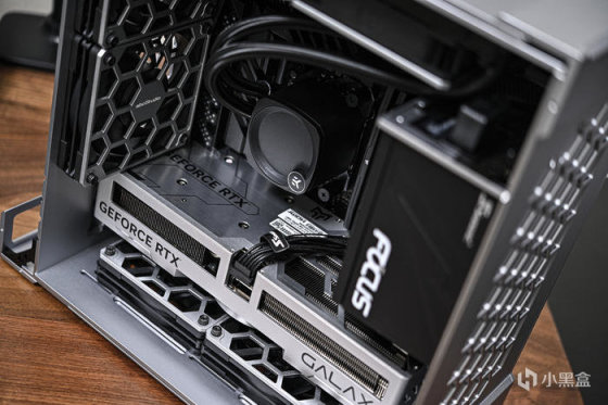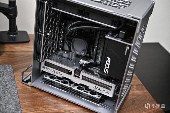 影馳 Galaxy GeForce RTX 4070 Ti 金屬大師 OC 顯卡。同樣的銀灰金屬機甲風格,無光設計,323*140*63mm(含擋板)的尺寸和這款機箱是非常的搭配的。