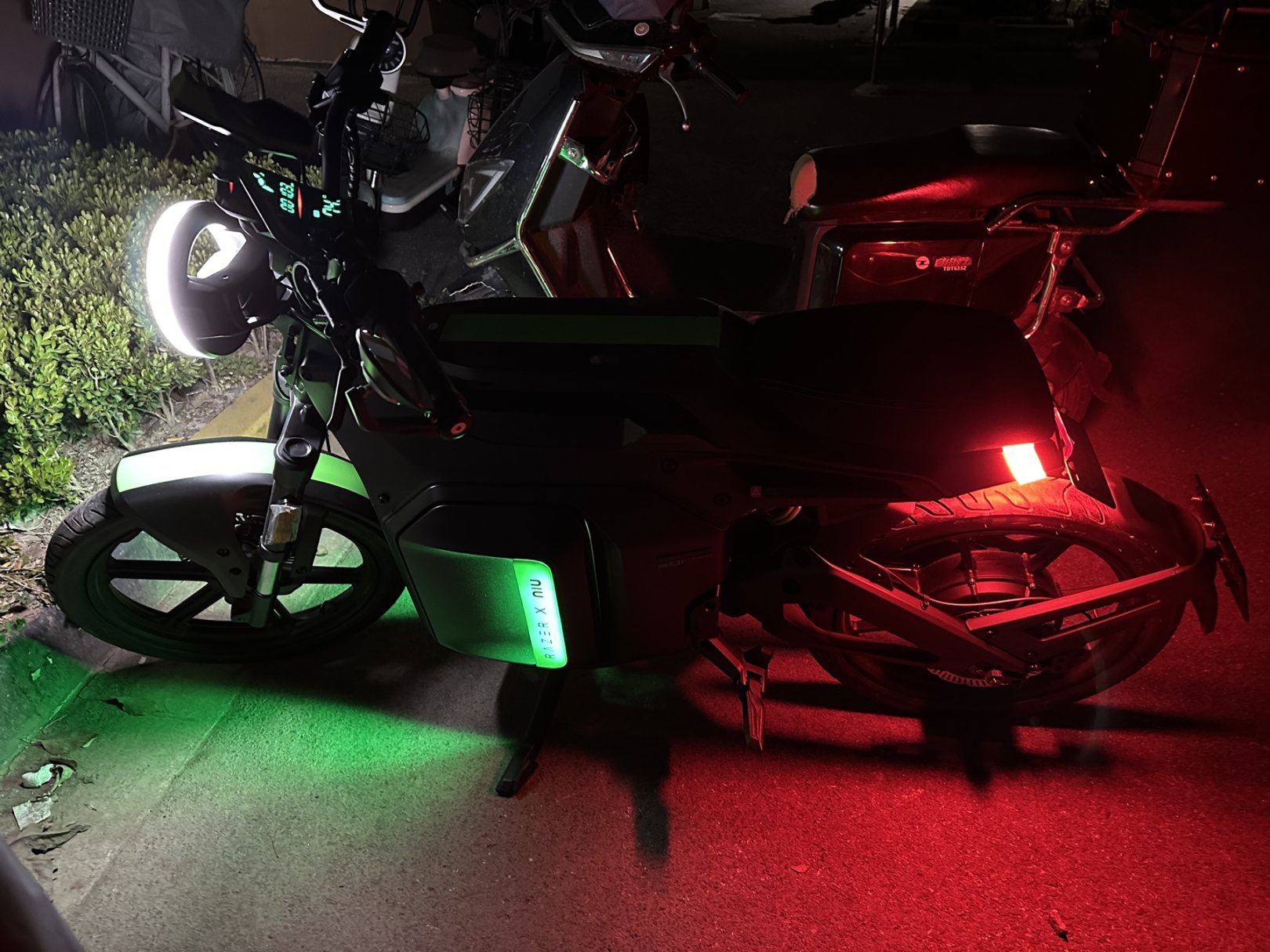 在基础骑行上面,这辆车给我带来的体验还是很不错的,就是有一点很有意思:它的转向声效,和敲木鱼的声音不能说非常相似,只能说一毛一样!每一次转弯我都有一种赛博骑手在超度真实路人的感觉,太社死了