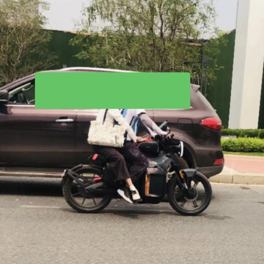 可以看到坐垫偏短,单人骑行完全足够但是再带一个人就显得不是那么舒适,除非不背背包➕自己往前坐坐挤🥚🥚,比如下面这种: