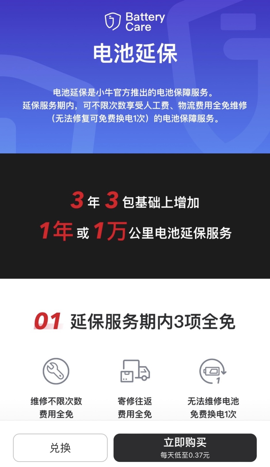 电池也有延保服务,但是我问了一圈车友,大家都说换大电池之后就不会想管小电池了,就没必要买了。