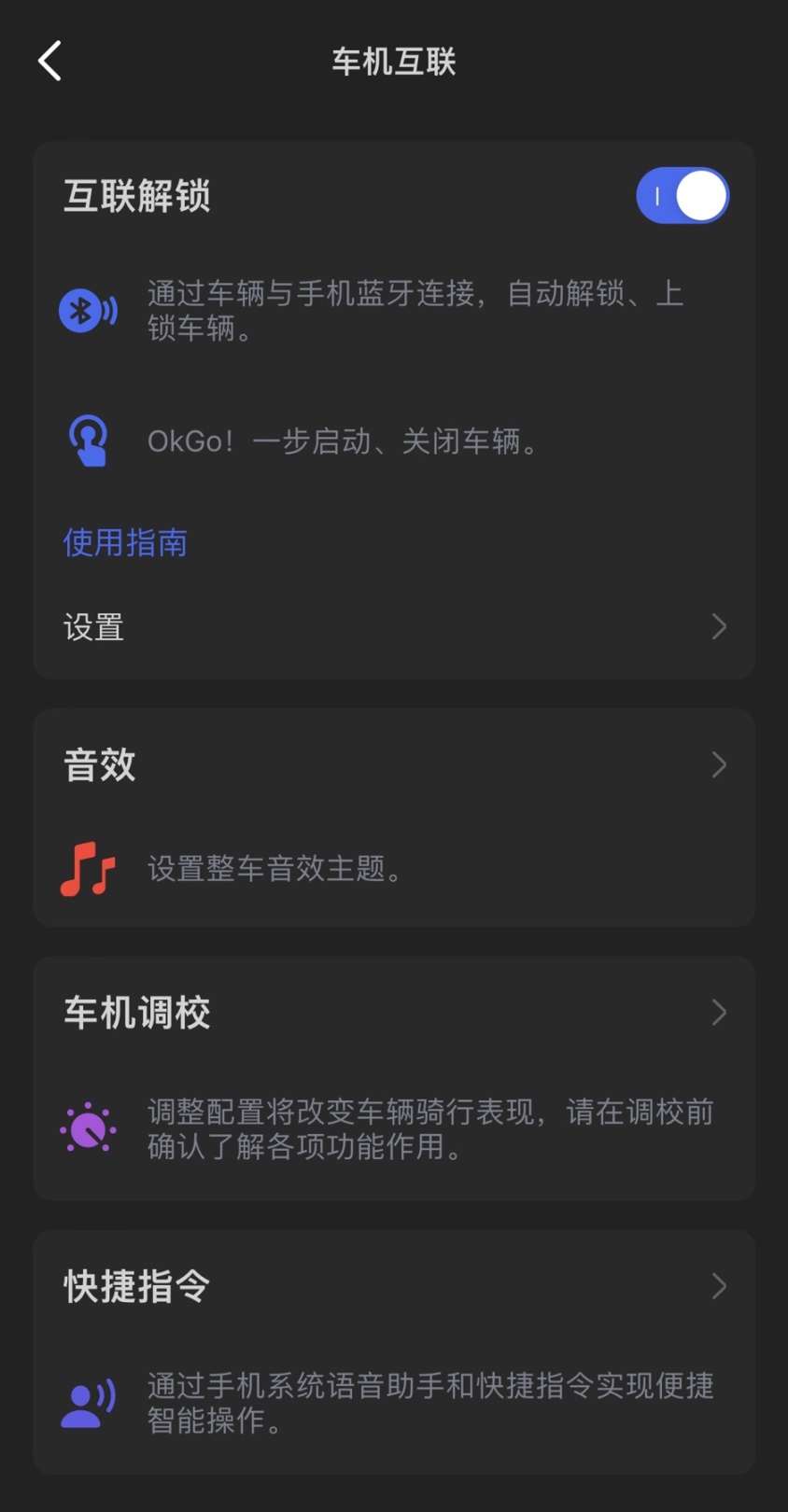 在车机互联里可以对车子进行各种调校,包括设置蓝牙钥匙、整车音效、高级车机设置和siri快捷指令。