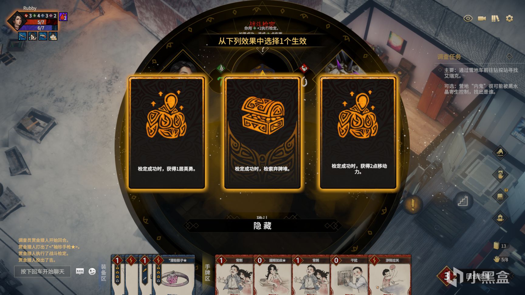3. 提升回合外玩家的参与感,让玩家更多参与队友行动。我们将检定系统修改为所有人都能参与每一次检定,所有卡牌都能投入检定并默认提供1点检定值。同时我们会增加检定牌的强度和功能性,让每个卡组都能找到合适的检定牌作为润滑剂。