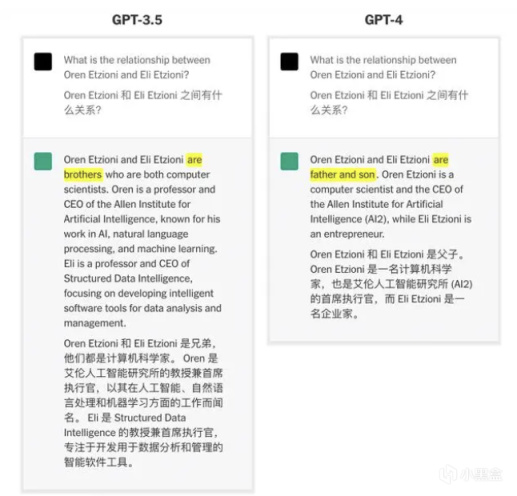 在文本能力上,GPT-4比以前的GPT-3準確性更高,可以廣泛地用於多種語言、跨語言環境,一些老版GhatGPT出錯顯得像“人工弱智”的問題,GPT-4能夠很精準地回答出來!
