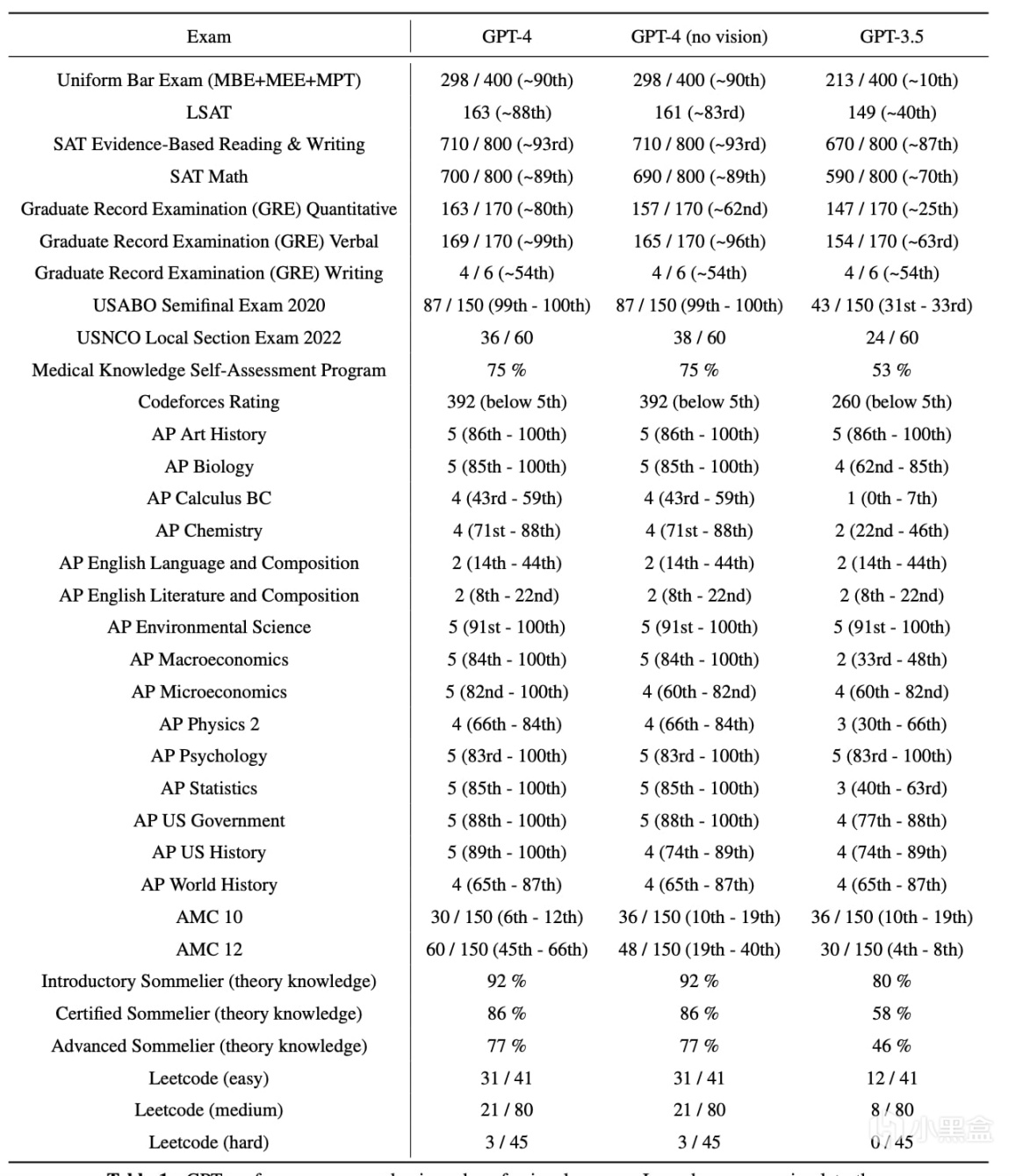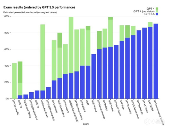 在最難的律考中,GPT-4模擬律師考試獲得了前10%的成績,對比ChatGPT,也就是Gpt-3.5-turbo版本,則只能在律考中排名最後的10%,GPT-4在考試解題上的效果遠超GPT-3!