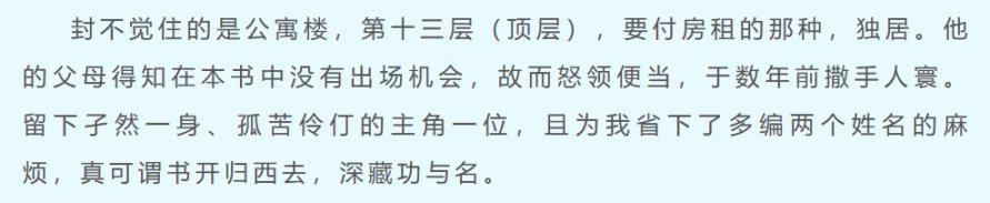 这一段我真的太喜欢了,看到这个位置我真的是绷不住了,很多网络小说主角父母都要自适应性死亡,这里的这一段我真的很难用言语形容,只能说太乐了
