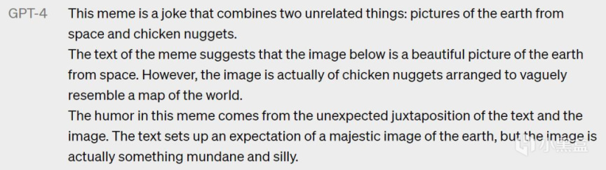 GPT-4回复,这个梗图是一个笑话,结合了两个不相关的东西:从太空看地球的图,以及鸡块。