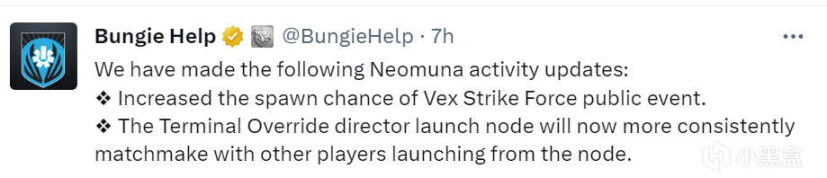 VEX打擊小隊出現率提高(在VEX入侵區出現的稀有事件,必掉金裝,出現時會有公共事件的圖標)