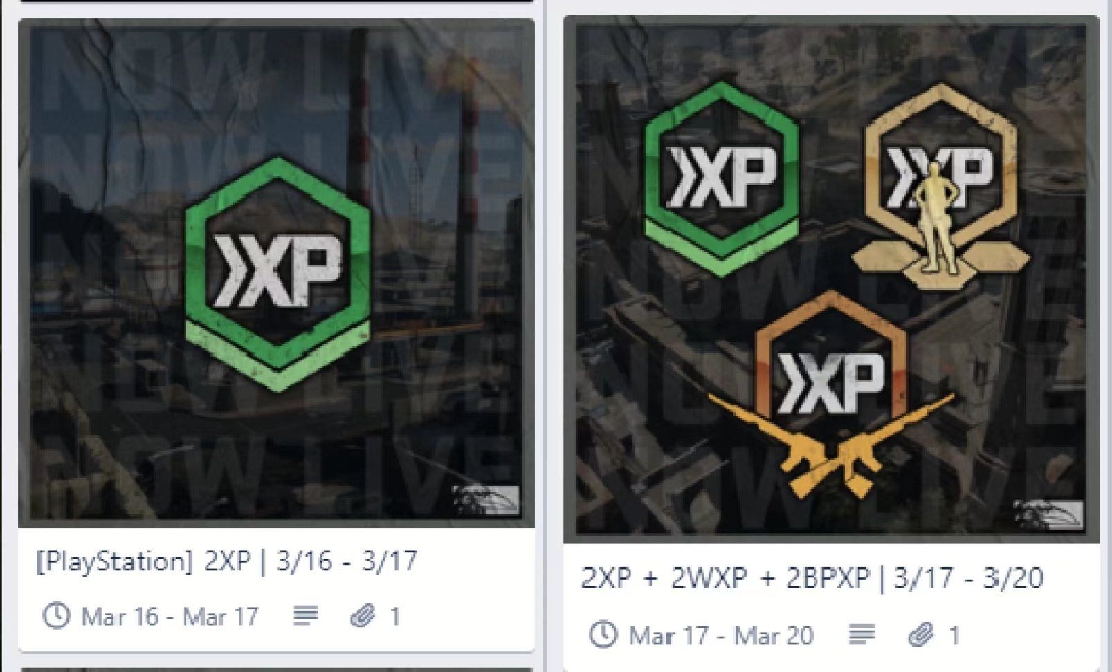 - 3月18~21日:经验值、通行证、武器(全平台)