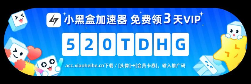 在小黑盒加速器,点击会员充值→右上角会员卡卷→输入“520TDHG”,即可白嫖3天加速(1次/月)和续费9折券哦