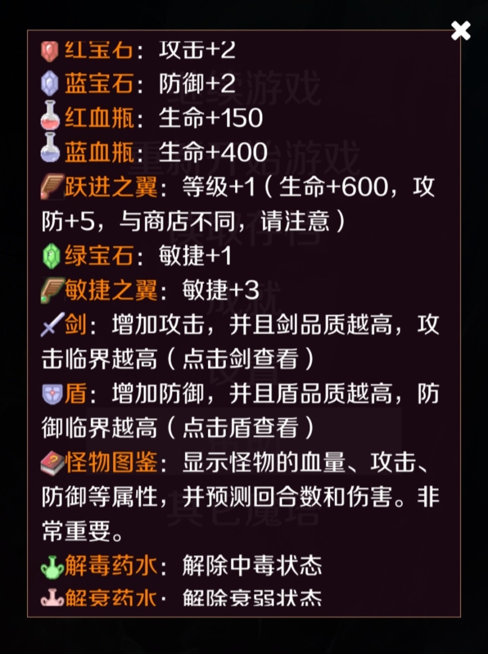 新新魔塔的一些元素介绍