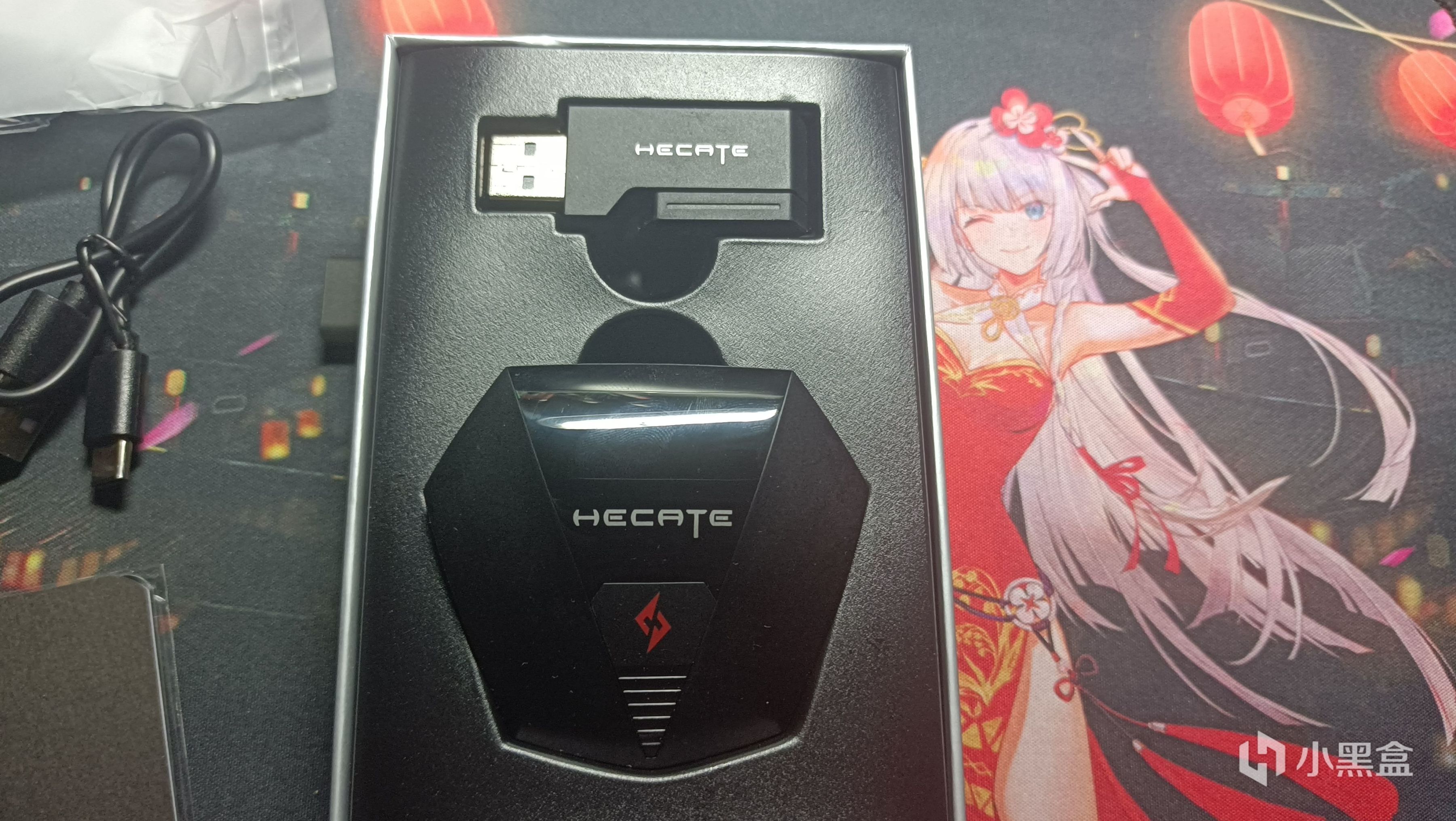 耳机叫漫步者Hecate GT4S雷霆版,但数码产品名字越长但不代表着它越强哈。耳机包装盒比较小巧,盒子上大大贴图标明了耳机的特色:双模蓝牙,内置配置器,可达15毫秒超低延迟。打开盒子,上边是适配器,下方是耳机的主体,盒子底部有type c数据线,说明书和两对耳帽。