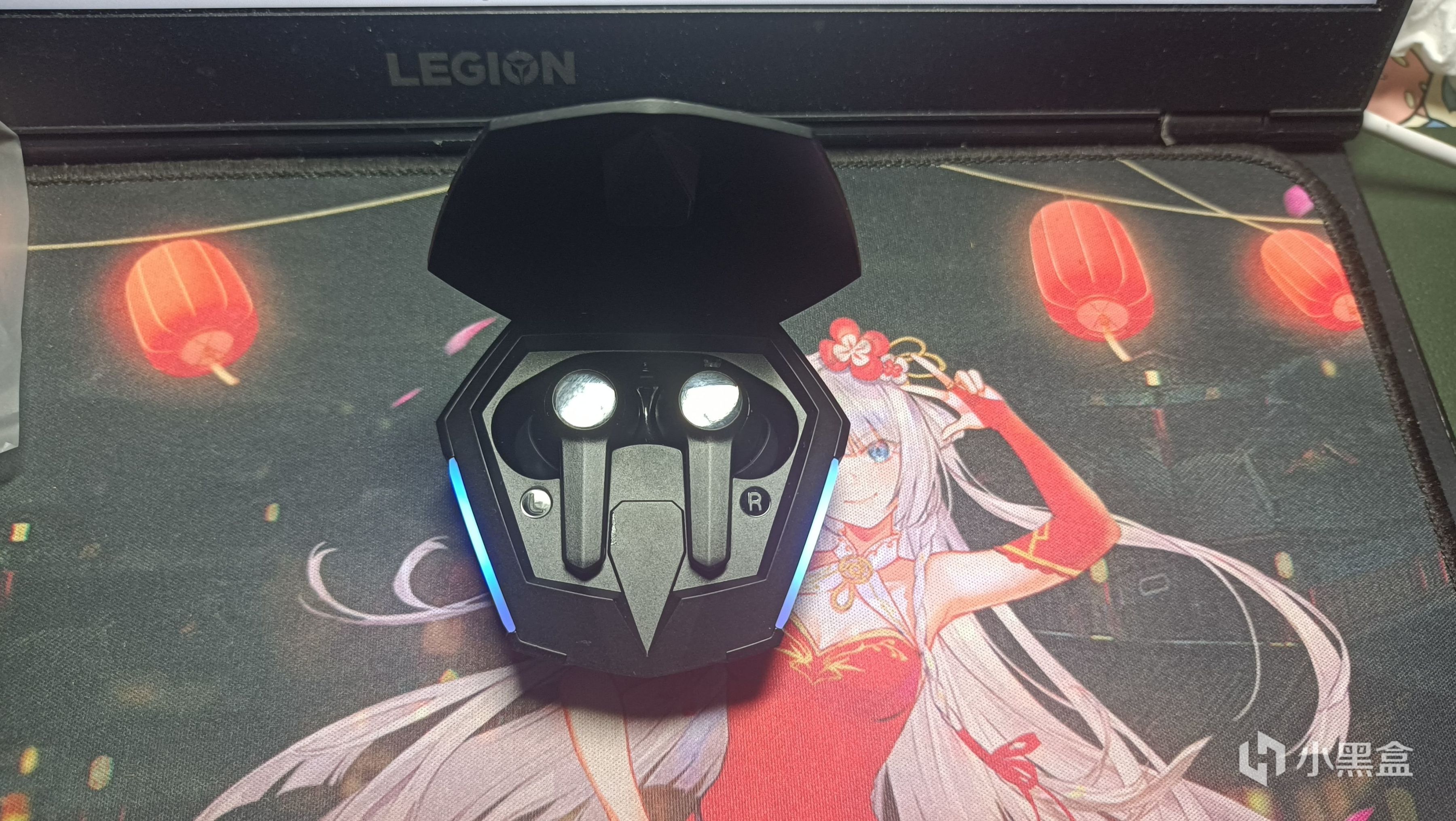 耳机仓两边则是磨砂的手感,各自配有有鹰眼式的RGB灯,在开启和关闭时会亮起。耳机舱像粉饼盒一样的开启方式,最大可开合角度能达到90度。