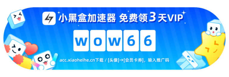 在小黑盒pc端加速器输入kenan66或wjb66或wow66,即可每月分别白嫖三天会员时长。